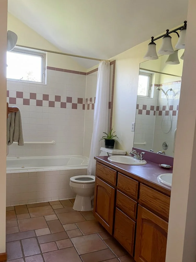 Upstairs – 3 bedrooms (2 primaries), 1 large shared full bathroom, one ¾ bathroom